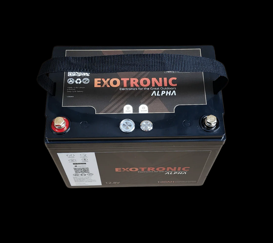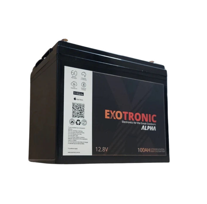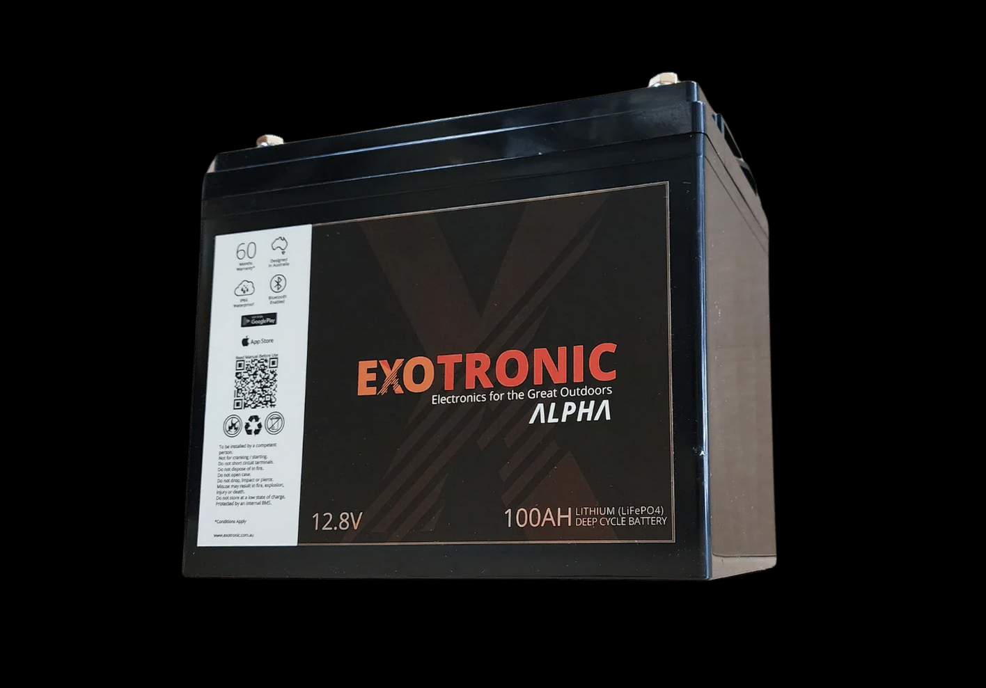 The Exotronic Alpha Series 12V 100Ah LiFePO4 lithium battery is a compact, high-performance deep cycle solution designed for caravans, RVs, 4x4 touring and marine applications. With advanced Bluetooth monitoring, a durable IP66 casing and reliable safety features, this battery delivers dependable power for every adventure.