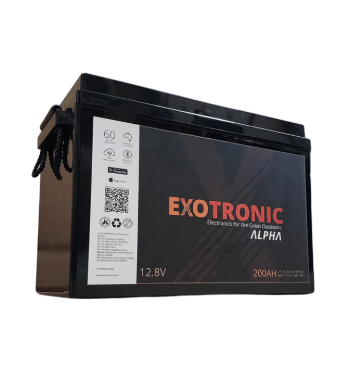 The Exotronic Alpha Series 12V 200Ah LiFePO4 lithium battery is a high-capacity, deep cycle solution designed in Australia for caravans, RVs, 4x4 touring and marine use. With advanced Bluetooth monitoring, robust IP66 construction and a powerful 200A BMS, this battery delivers long-lasting, reliable energy for both off-grid adventures and home backup systems.