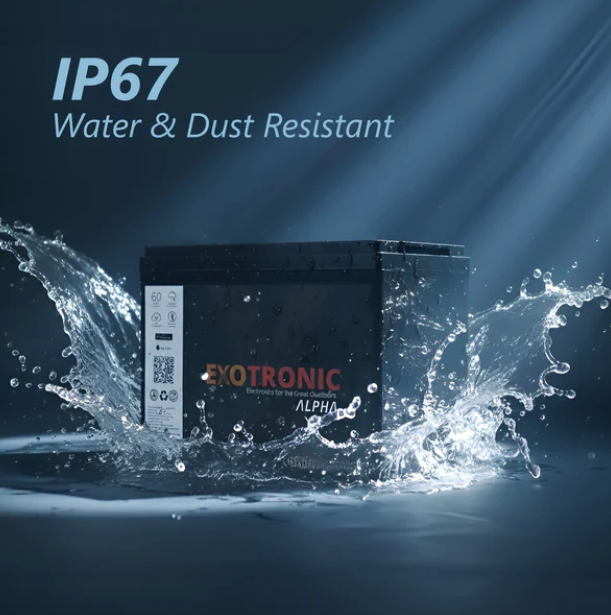 The IP67 rating means the battery is fully dust-tight and water-resistant, capable of withstanding temporary immersion in up to 1 metre of water for 30 minutes. This level of sealing makes it ideal for marine environments, canopy installs and exposed off-grid systems.