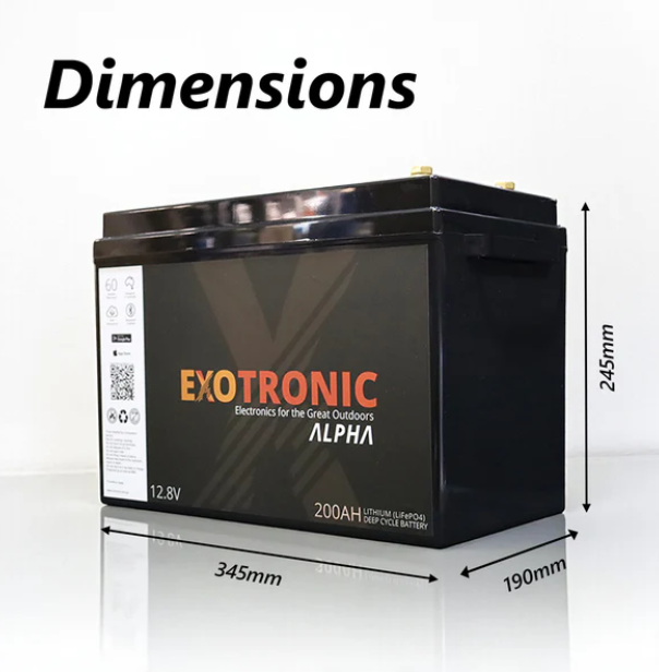 Exotronic 12V 200Ah Alpha Series Smart Deep Cycle LiFePO4 Lithium Battery (Bluetooth + On/Off Button)